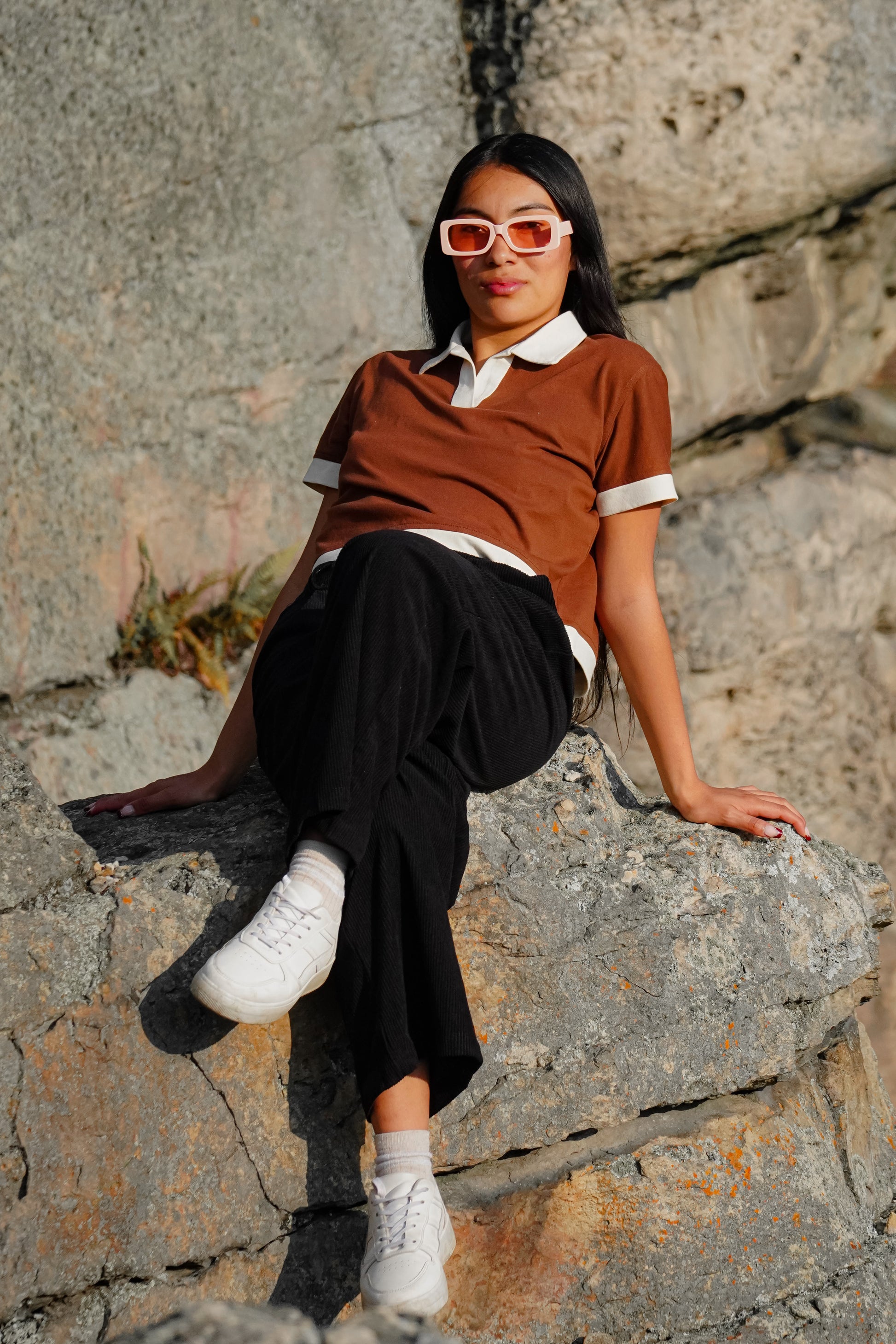 Camiseta Crop algodón cuello polo